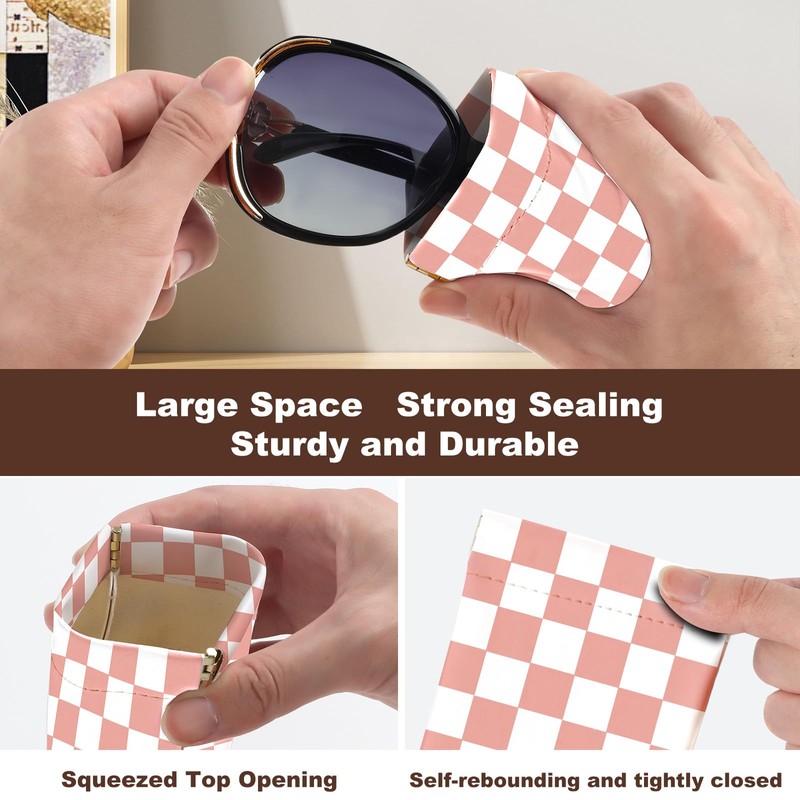 2Pcs Sunglass Eyeglass Glasses Case Soft PU Leather with Cleaning Cloth Soft Sunglasses Case Cute Aesthetic Portable Travel Glasses Pouch Bag for Men Women Girls(Checkered Pattern