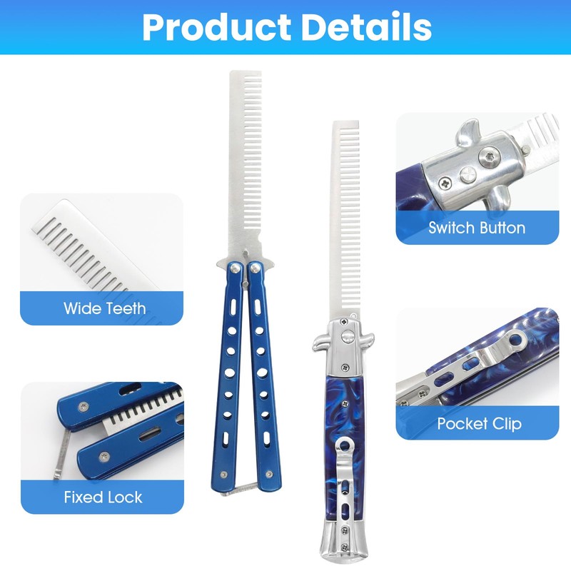 - Package Includes:You will receive 2 sets of hair combs, including 1 spring-knife comb and 1 folding butterfly comb, which are convenient and sufficient for your daily use