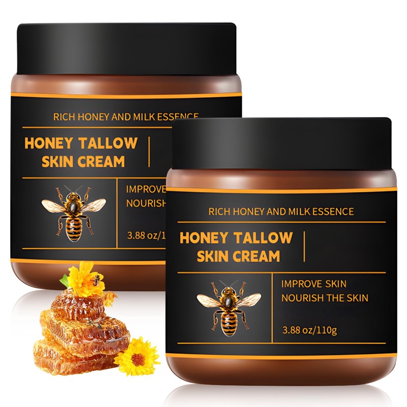 2Pcs Tallow Honey Balm, Tallow and Honey Balm for Face, Natural Organic Whipped Beef Tallows Face Moisturizer with Raw Honeys and Beeswax, Deep Nourishing