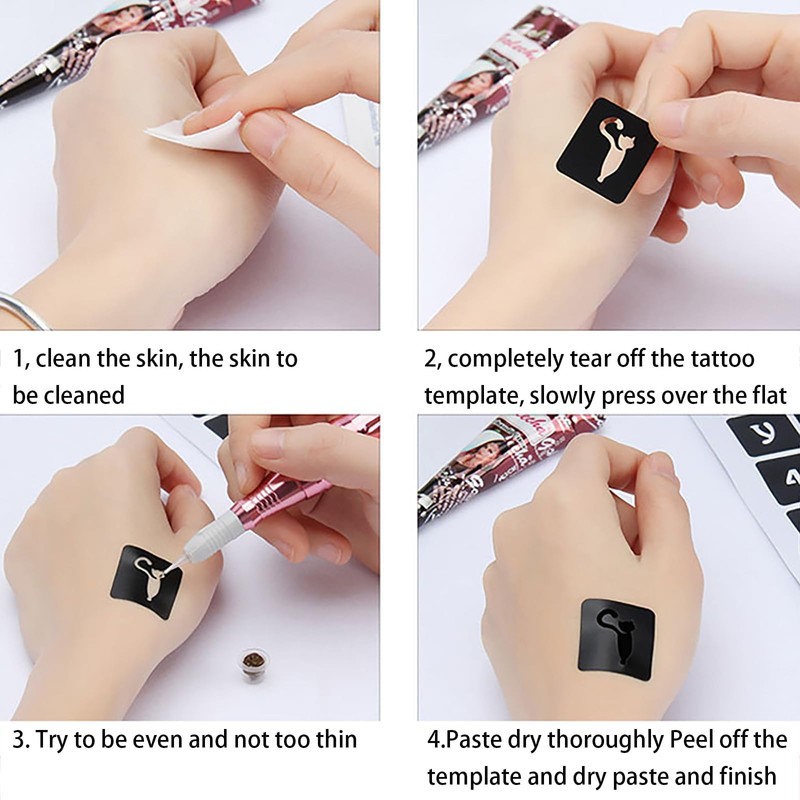- Variety of pattern options: There are 20 sticker templates. Apply them to the skin, fill in the grooves, then peel back and the flawless tattoo is revealed