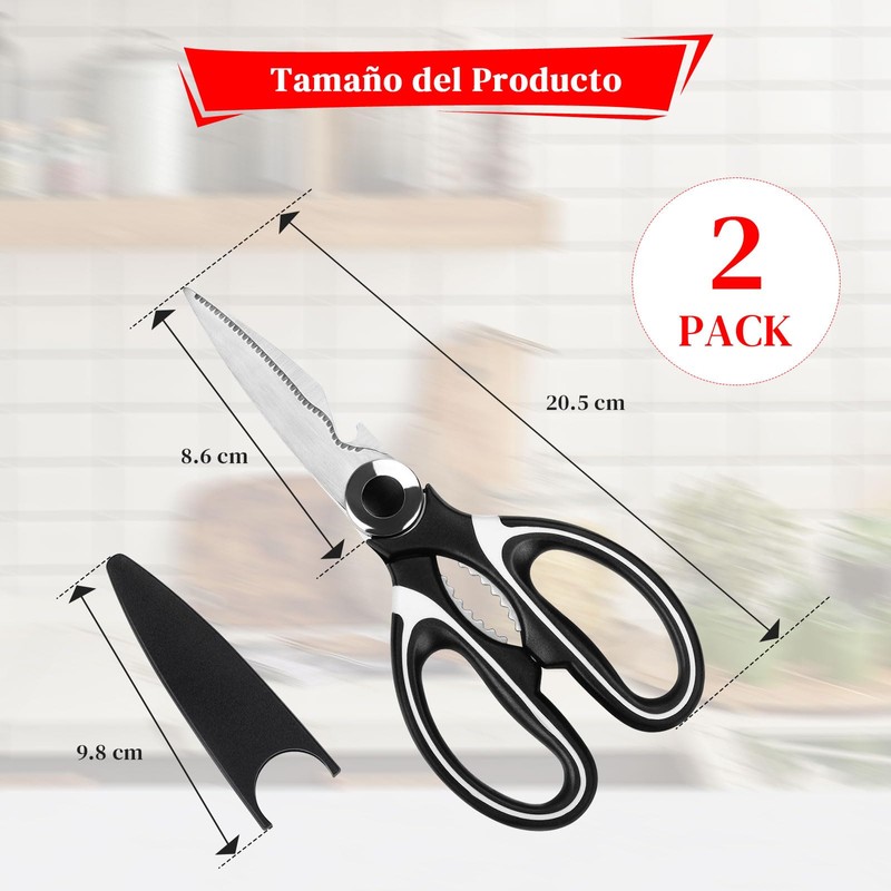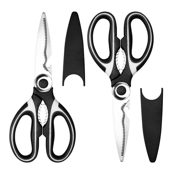 2PCS Tijeras de Cocina Multifunción, Profesionales Acero Inoxidable con Cubierta Protectora para Cuchilla para Cizallar | Pollo | Aves | Pescado | Hierbas | Abrir Botellas Scissors