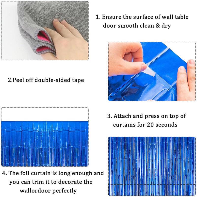 - Easy To Use: The tinsel foil fringe curtains are already prepared with adhesive strip, this upgraded third generation adhesive tape is designed for wall application so that it could hold up longer time and safer on your wall. Just remove the paper backing and stick foil streamer curtain to the wall and you will have a pink glitter backdrop for your party.