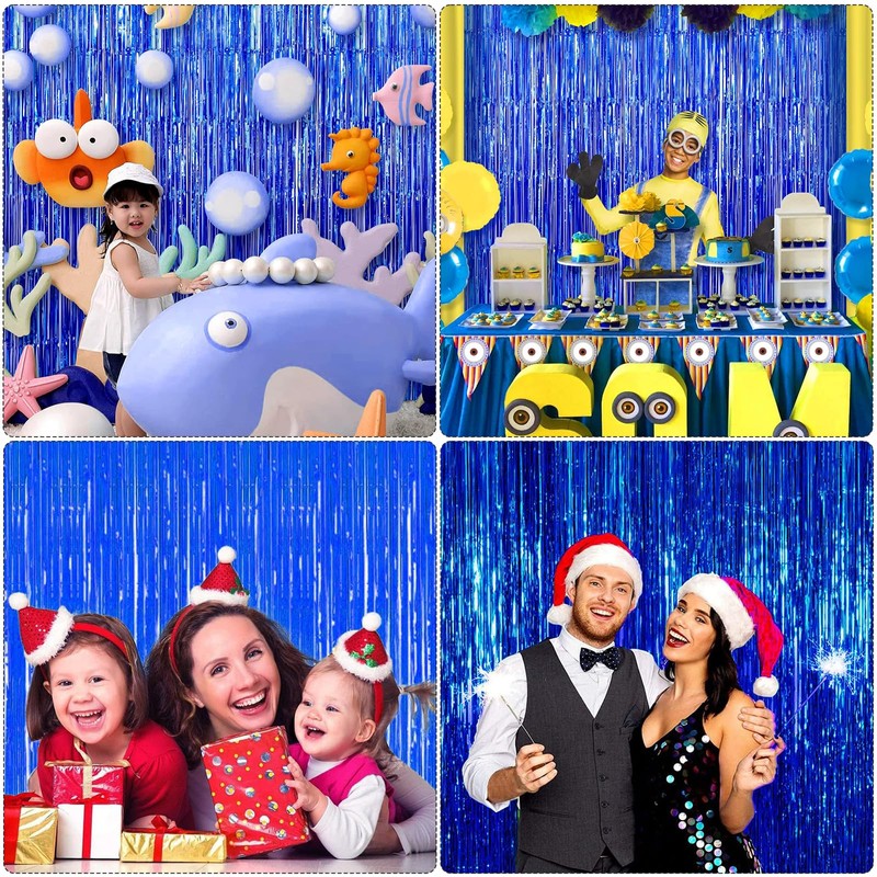 - Package Contents: The foil curtain is made by aluminium foil with laser spangle. 2 Packs/SET, enough quantity for your glitter party decorations. The size of each foil fringe curtain is 1m x 2m, long enough to decorate your home party.