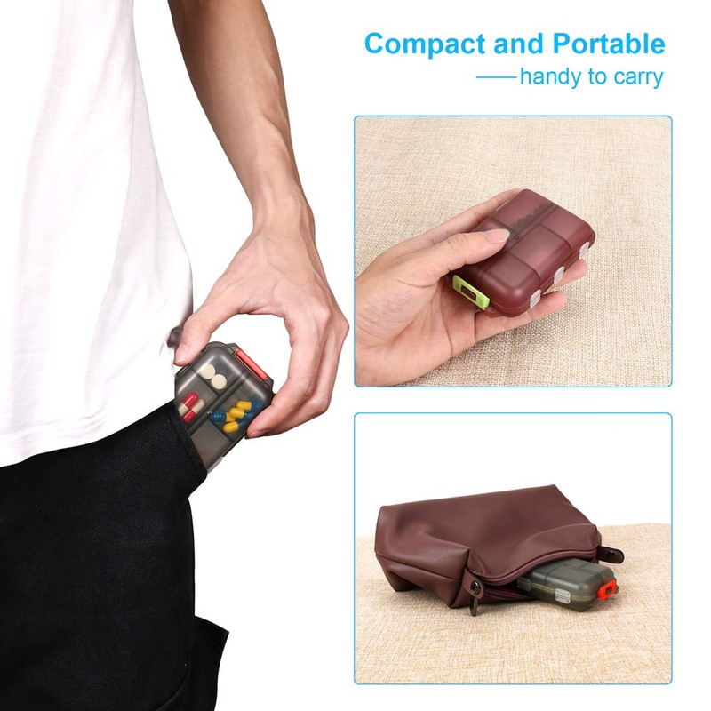 - 【COMPACT AND SPACE SAVING】The portable medicine organizer is small enough to put in your suit pocket and fit in your purse or wallet whenever you go.
