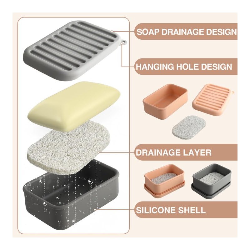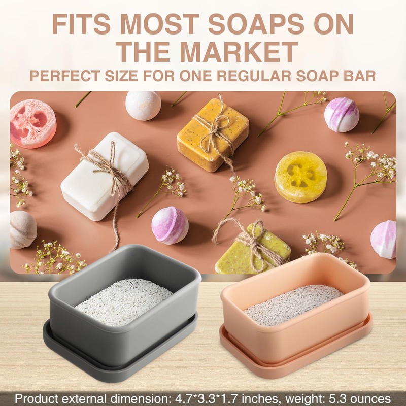 2Pcs Travel Soap Case with Drainage Pad, Leak-Proof Silicone Bar Soap Container