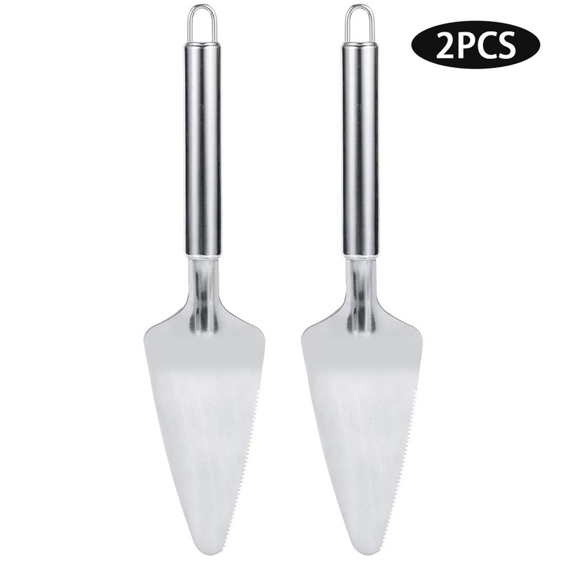 2Pcs Triangular Pizza Cutter, Stainless Steel Multifunctional Spatula for Baking (Silver)