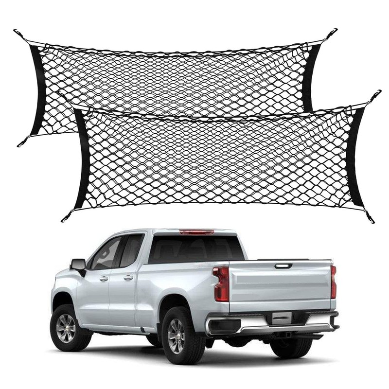 2pcs Truck Bed Cargo Net for Pickup, 52''- 66'' Heavy Duty Envelope Truck Trunk Cargo Storage Organizer Mesh Net Truck Bed Accessories for Ford F150 Chevy Silverado WT LS LTZ GMC Sierra (4.3ft-5.5ft)