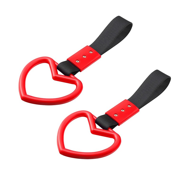 2PCS Tsurikawa Rings Heart-Shaped Car Hand Strap, Rear Bumper Warning Loop Janpanese Heart Handle for Cars, SUV, Subway, Bus, Auto Interior Exterior Warning Decoration (Red)