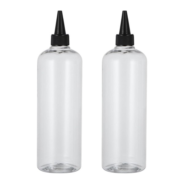 2pcs Twist Top Applicator Bottles Hair Colour Applicator Bottles BPA-Free PET Black Nozzle Squeeze Empty Plastic Bottles Refillable Dropper Bottles 16 ounce for Liquid, Hair Oil, Inks, Glue, Crafts