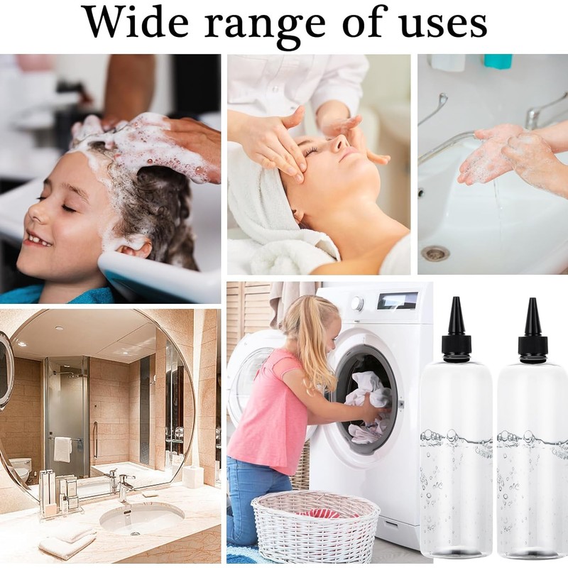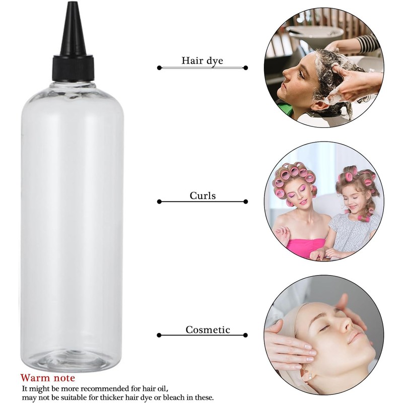 - 【Product Specifications】:Each package comes with 2 pieces clear plastic bottles with black tips and twist-on cone lids.Hair dye bottle applicator is 8.9 x 2.5 inches (H x D), with large capacity of 500ml/16.9oz.