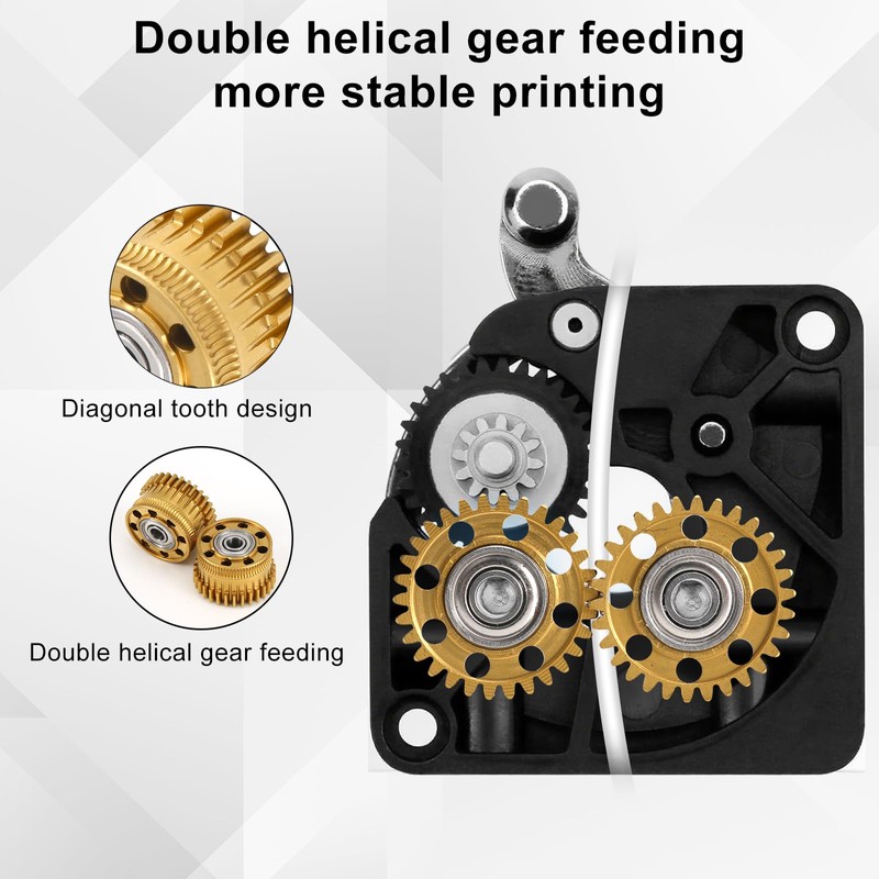 - Upgrade Gear: Adopting a double helical gear design, the extruder gear has a better grip and a more stable printing. The hollow out design can decrease shaking, smooth for you to use.