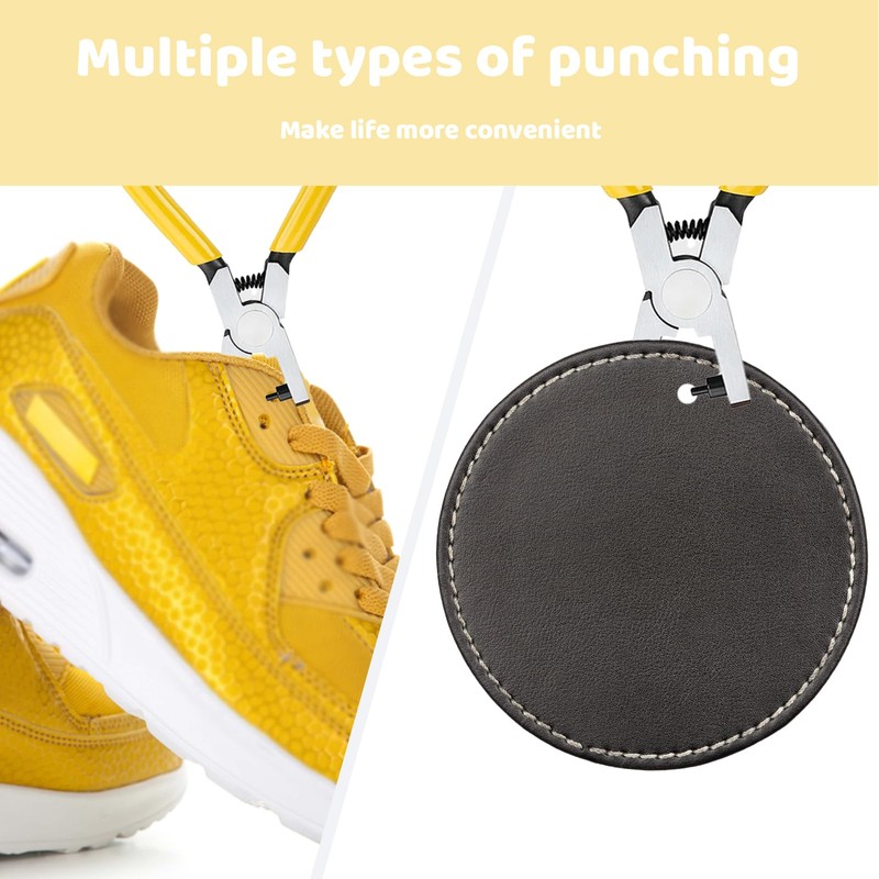 • Ergonomic design: Leather punching pliers adopt a double-lever mechanism, which not only improves your punching efficiency, but also saves your effort. It only requires a gentle grip with the palm of your hand to complete, and the punch pliers have anti-slip handles that provide comfort while fitting your palm and allowing maximum force output, ensuring long-lasting work.