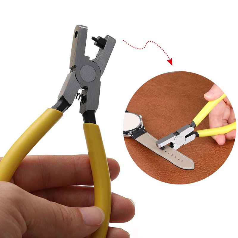 2pcs Watch Band Leather Fabric Hole Punch, Leather Punch Tool, Diy Strap Hole Punching Plier, Universal 2.0mm Belt Hole Puncher Tool for Leather Canvas Paper Household Leather Craft Tools Package Contents: You will receive 2 leather punch tool, the size is 14cm*9.5cm Material: Crafted from carbon steel, this belt drilling tool is build to last with a smooth, rounded design that resists rust and deformation. Its robust construction guarantees a long service time Ergonomic design: Leather punching pliers adopt a double-lever mechanism, which not only improves your punching efficiency, but also saves your effort. It only requires a gentle grip with the palm of your hand to complete, and the punch pliers have anti-slip handles that provide comfort while fitting your palm and allowing maximum force output, ensuring long-lasting work. Easy to use: Place the leather punching pliers on the area that needs to be punched, just press the handle gently to punch the small holes you need in the leather. Our hole punching tool can easily cut multiple layers of fabric, not easily misplaced, and punch holes easily, reducing hand fatigue. It's easy to carry and always has in your toolbox, increasing your efficiency and helping you get great results while saving time. Widely Use: The leather punch tool is easy to use and is a practical cutting and punching tool, ideal for use on a variety of surfaces. Such as punching round holes in leather, belts, rubber, canvas, fabric, cardboard, saddles and similar materials; also an ideal gift for craft lovers.