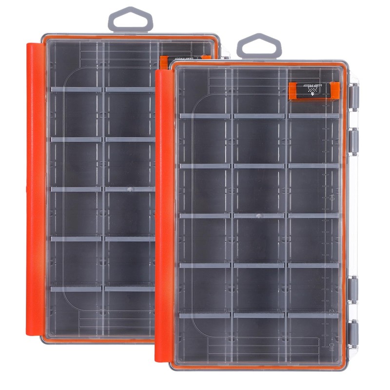 2PCS Waterproof Fishing Tackle Box,3600 Tackle Tray,Clear Plastic Fishing Lure Organizer with Removable Dividers,Storage Box for Lures, Hooks,Sinkers and Floats(Orange)