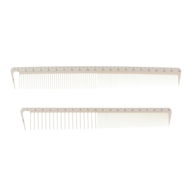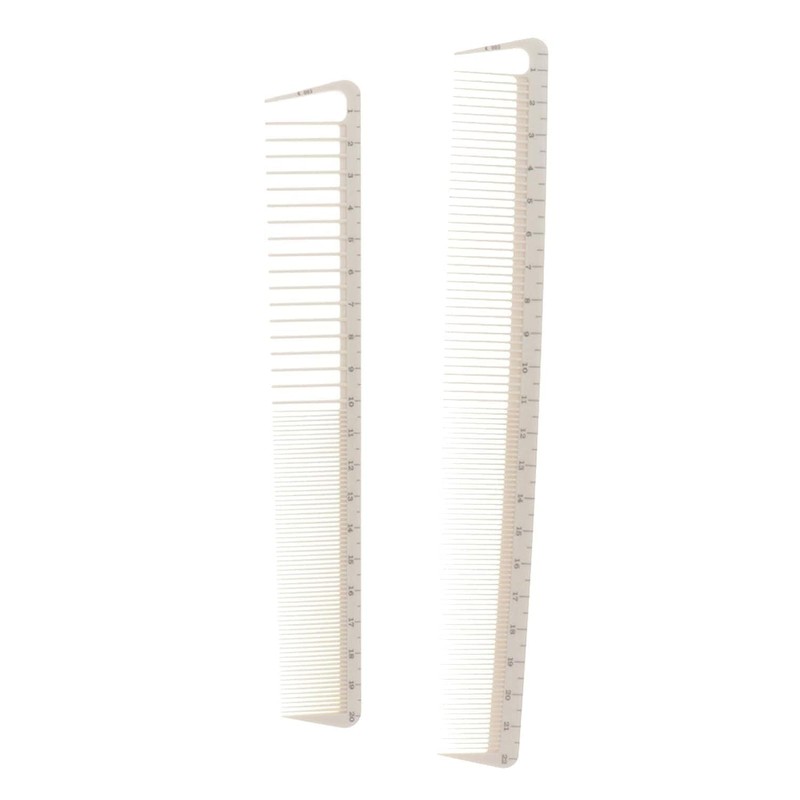 - PROFESSIONAL DESIGN: Set of 2 white precision hair cutting combs crafted specifically for salon and barber use with measurement markings for accurate styling