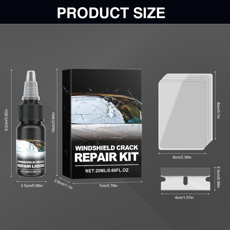 - 【Windshield Chip Repair Kit】The fluid dries to a clear finish, rendering the repair practically invisible. Suitable for all windshield types, it bonds with glass and seamlessly fills cracks and chips.