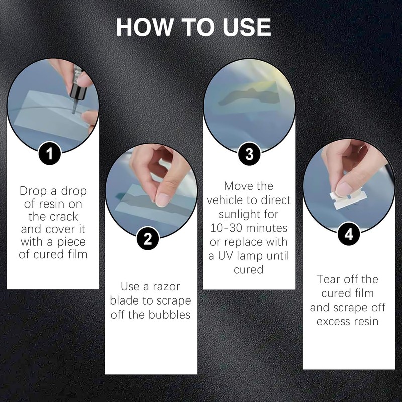 - 【Glass Repair Fluid】The Glass Repair Kit uses an advanced resin formula designed to quickly and easily repair chips and cracks in your car's windshield, filling them to a point where they are virtually invisible, restoring your windshield's original clarity.