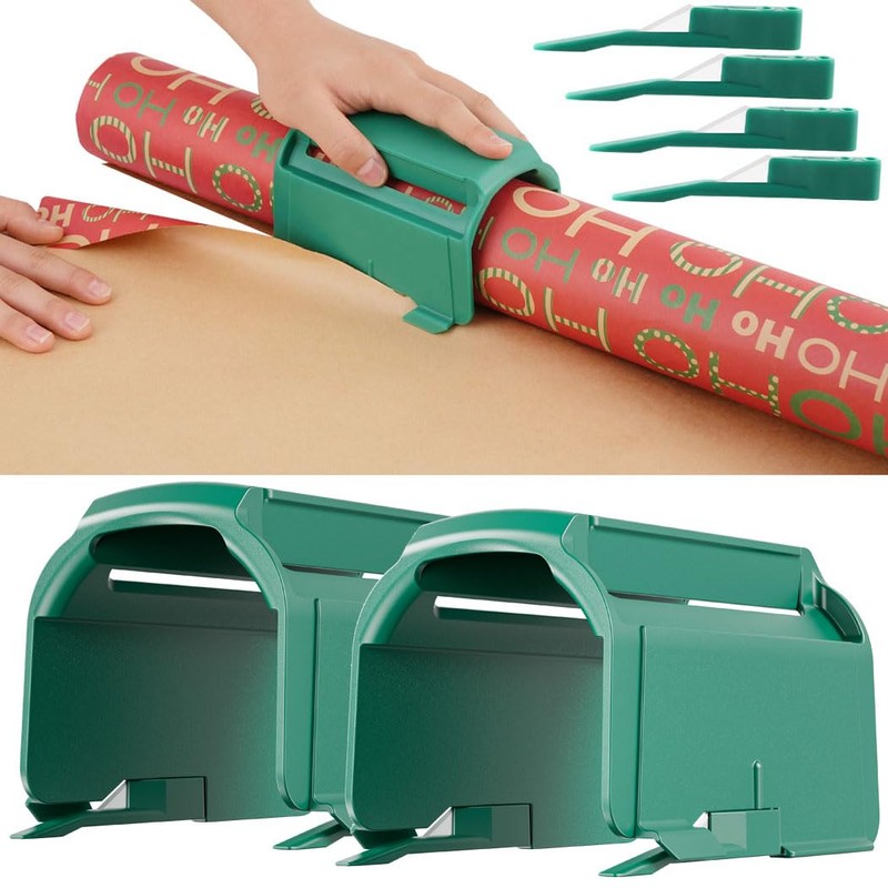 2pcs Wrapping Paper Cutter with 4 Replaceable Blade Set Heavy Duty Paper Cutters for Crafting Classroom Home Birthday Christmas Gift Wrap Cutter Tool Tube Dispenser Slicer Green