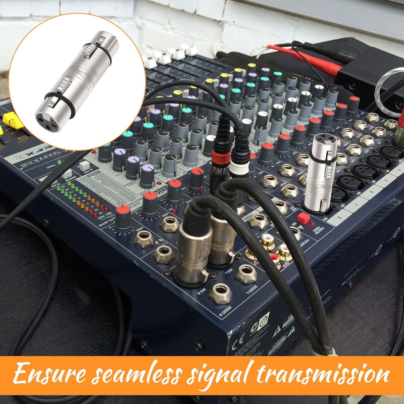You will receive 2 pieces of silver XLR female to female adapter. This XLR female-to-female couplers is durable, XLR female to female connector size is about 6.5cm x 1.9cm, and the quantity of 3-Pin XLR adapter allows you to have a spare, making it a practical addition to your audio equipment collection.