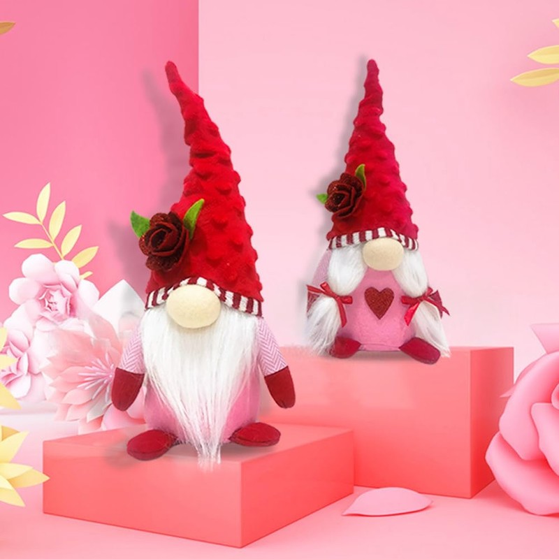 • Plush, Hand-woven Valentine's day Gnomes, perfect for cute, Valentine's day .