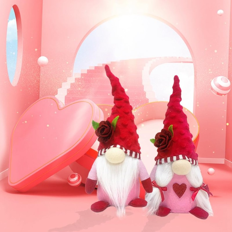 2Piece Valentines Day Gnome Plush Decorations Mr and Mrs Scandinavian Plush f...