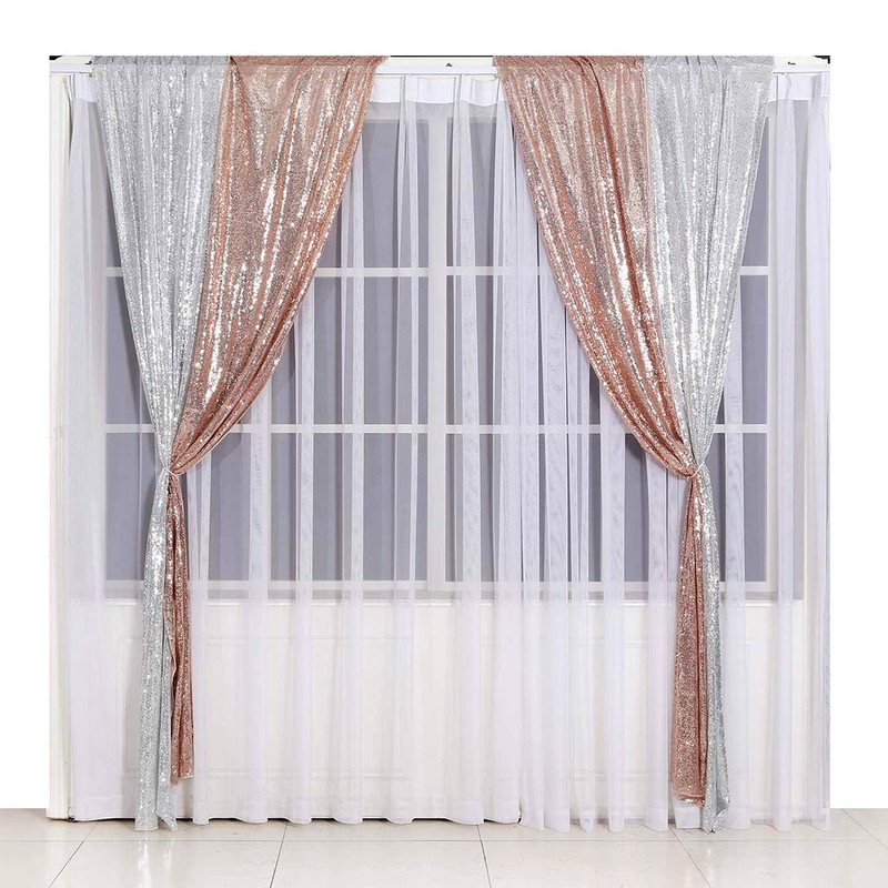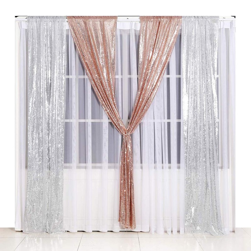 2Pieces Sequin Backdrop 2ftx8ft(60x243cm) Shiny Seamless Photo Booth Curtain for Party Wedding Decoration Photo Background, Rose Gold