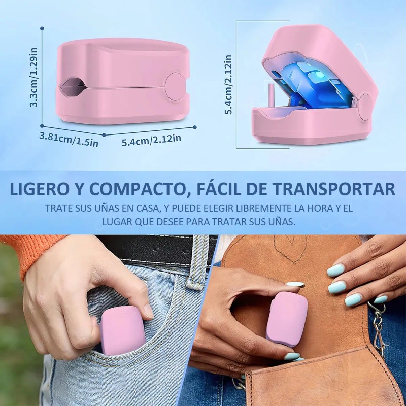 El dispositivo de iluminación para hongos en las uñas utiliza una terapia de luz de bajo nivel (LLLT) con 3 luces azules de 470 nm y luz infrarroja de 910 nm. La luz azul de 470 nm tiene un efecto antiinflamatorio y altera el entorno de los hongos, mientras que la luz infrarroja de 910 nm penetra hasta donde proliferan los hongos.