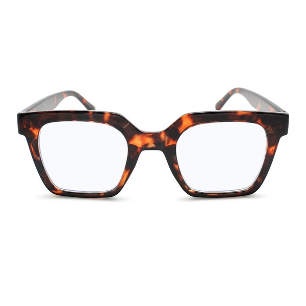2SeeLife Oversized Square Blue Light Reading Glasses for Women (Tortoise, +2.75)
