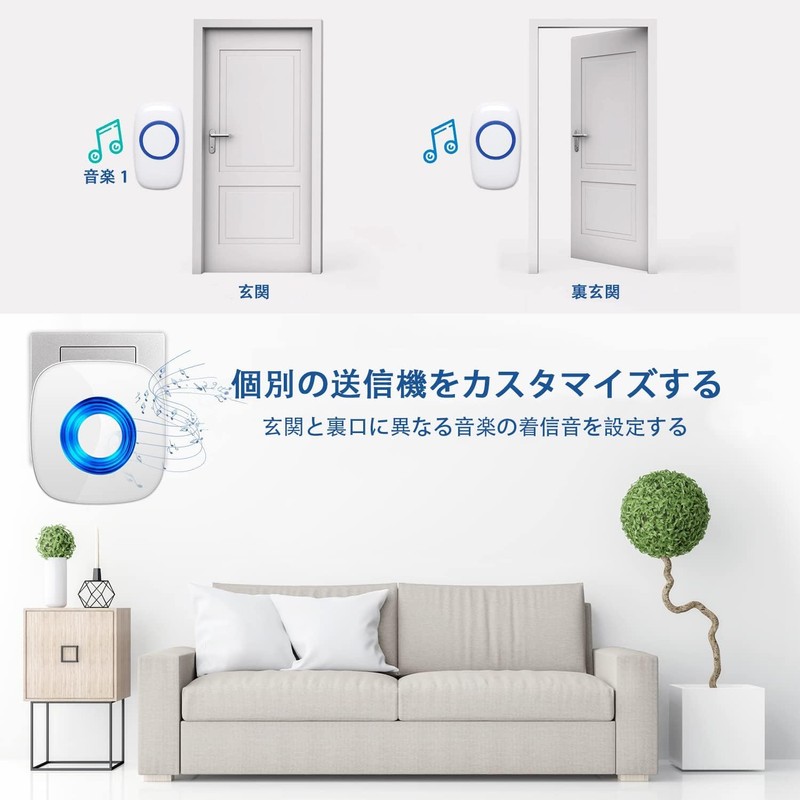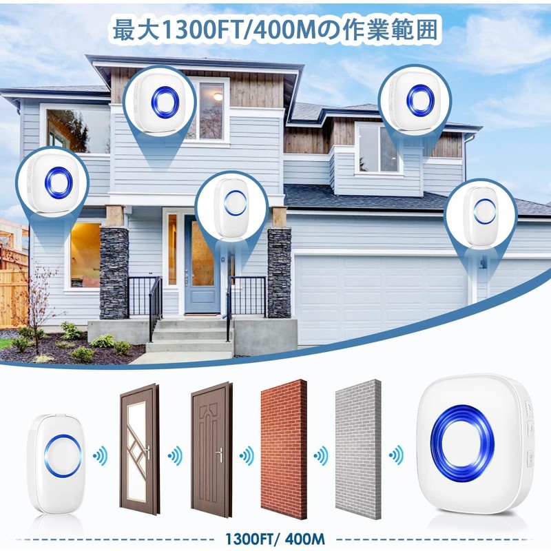 - 400M Wireless Range: The wireless doorbell sensing distance is up to 400M in unobstructed areas. With the doorbell chime, you will never miss visitors even if you have a few rooms away or on another floor. Each set of products has a fixed ID pairing so you can work independently without worrying about the wrong connection with the next signal