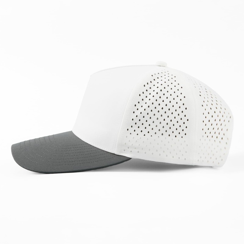 2THESTARS Quick-Dry Snapback Hats, 5-Panel Water-Resistant Mesh Baseball Caps for Men & Women, Golf, Running or Workouts - White + Dark Gray