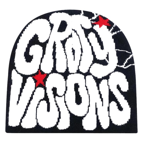 - [ GRAPHIC BEANIE Y2K DESIGN ] Our y2k beanie features a stylish, unique graphic design with a spiderweb pattern. Its knitted texture adds an aesthetic touch and suits the style of the younger generation. Perfect addition to any y2k inspired outfit.
