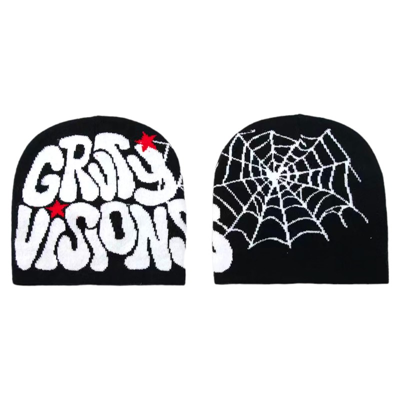 - [ VERSATILE Y2K HAT COLLECTION ] We offer a wide range of y2k hats with different graphics and patterns. This spiderweb beanie is just one of many designs that capture the essence of the y2k era. Enhance your look with our unique hats.