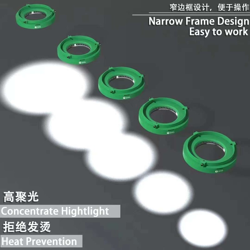 Light Ring - The LED lights produce a high density concentrated beam of light, which can be turned on for long time without overheating to avoid damage to the microscope.
