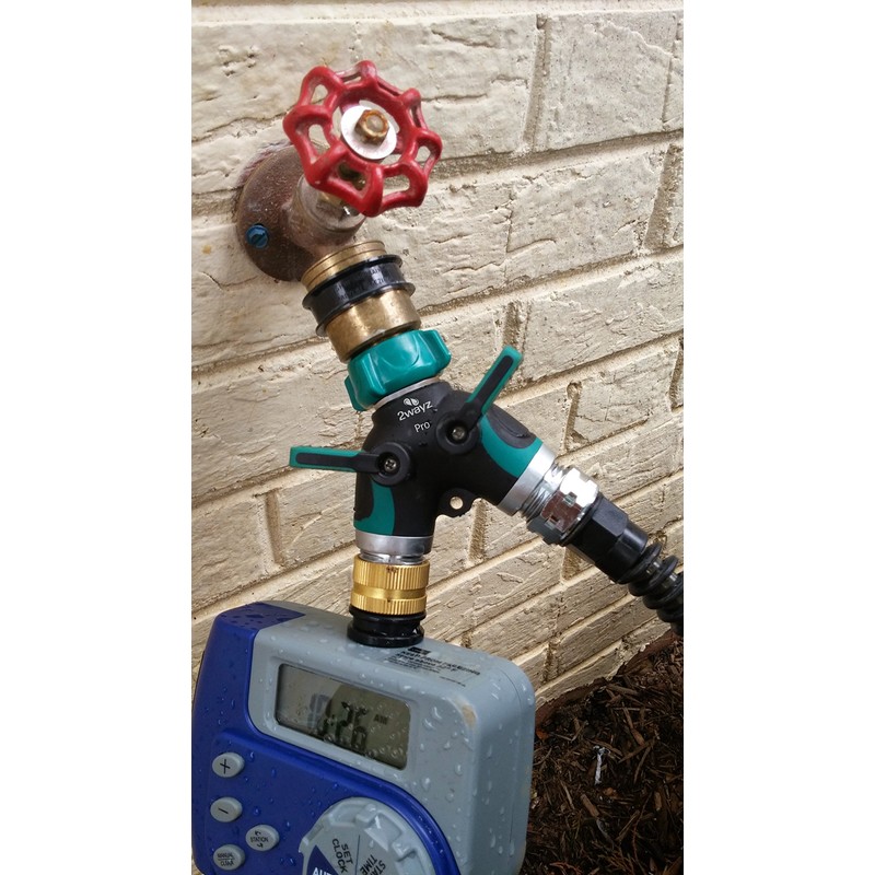 2WAYZ Hose Splitter 2 Way Heavy Duty Outdoor Faucet and Garden Connector - Water Spigot Splitter - Durable All-Metal Y Adapter with Shut-Off Valve - 4 x 4 x 1.5 Inches