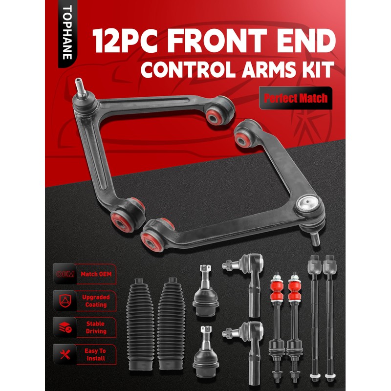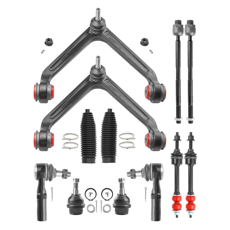 - Front Suspension Kit Include: 2x Front Upper Control Arms and Ball Joints Assembly Set, 2x Front Outer Tie Rod Ends Set, 2x Front Inner Tie Rod Ends Set, 2x Front Sway/ Stabilizer Bar Links Set, 2x Front Lower Ball Joints Set, 2x Rack and Pinion Boot Set.