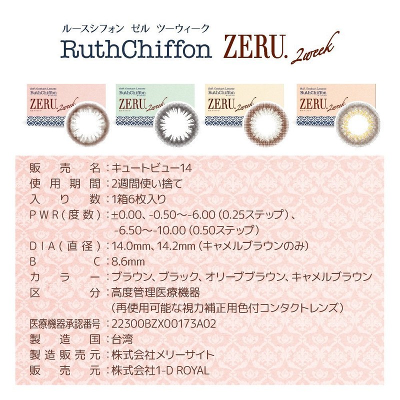 カラコン ルースシフォン 2week 度あり ナチュラル カラーコンタクト ZERU. 1箱6枚 ブラック(-0.50)