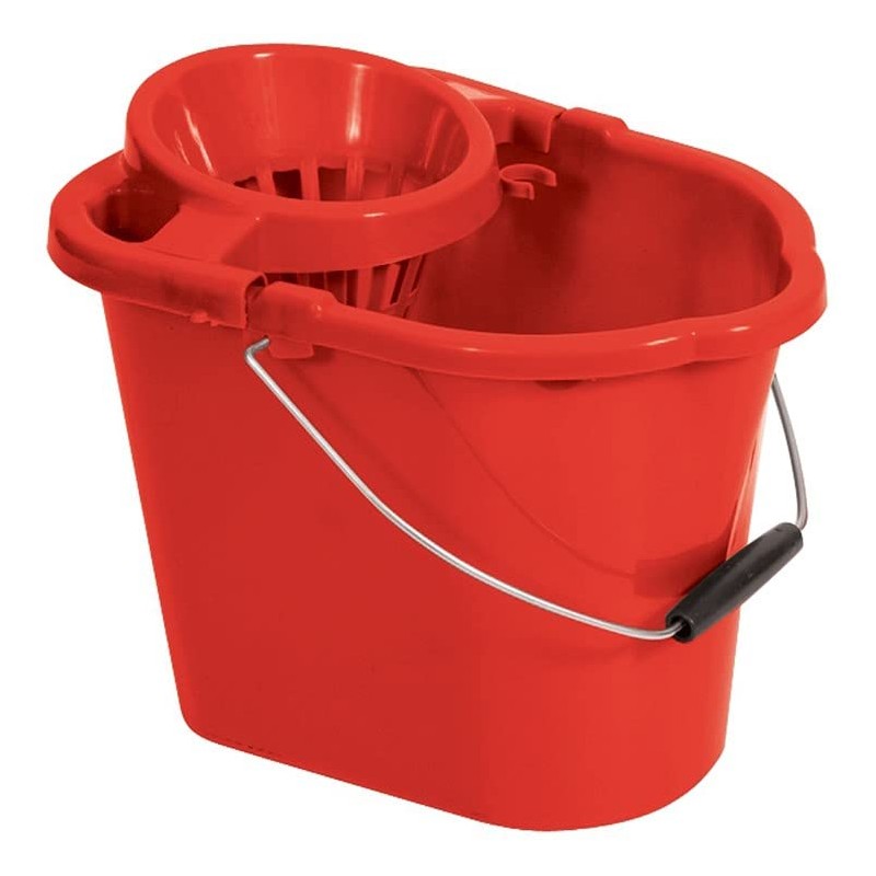 2Work Plastic Mop Bucket with Wringer 15 Litre Red CNT00684