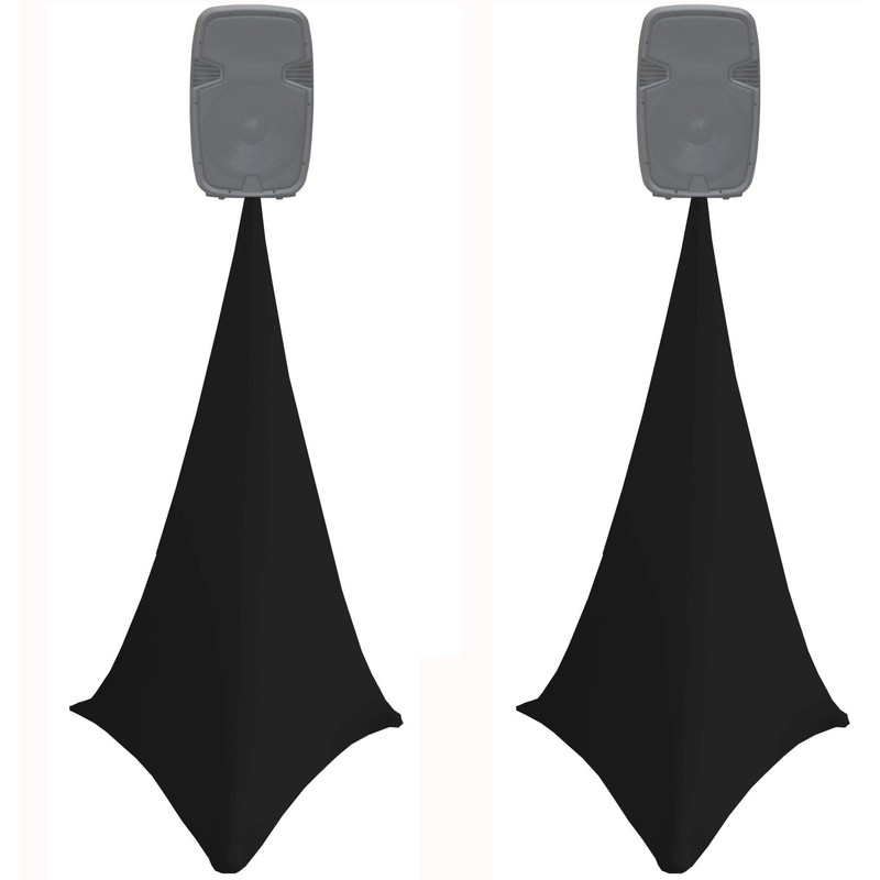 2x black double sided spandex stretch speaker stands scrims, tripod cover