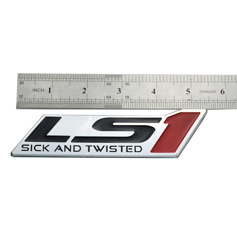 2X Chrome LS1 Emblem Badge Fits Fender Trunk Dash - Sick and Twisted - 3D Raised Strong Adhesive Fit for LS1 RED (Black Red Silver)
