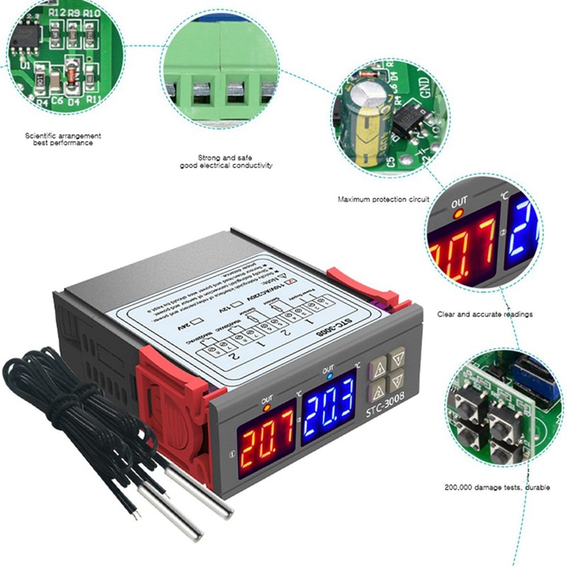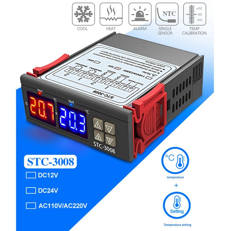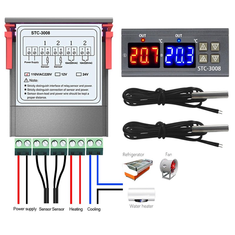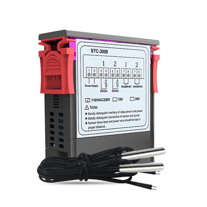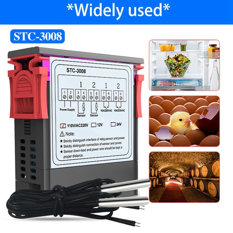 2X Digital Thermostat Temperature Controller -3008 Thermometer Sensor Hygrometer 12V 24V 220V