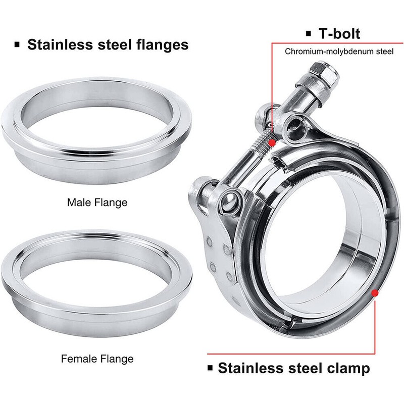 2X Exhaust Downpipe 3inch V-band Clamp 3" Male/Female Flange Kit SS304 stainless