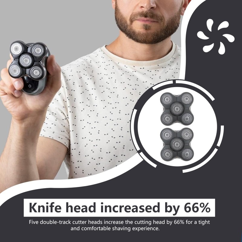 • With 5 Dual Track Shaver Heads and Shaven Head In Under 2 Minutes