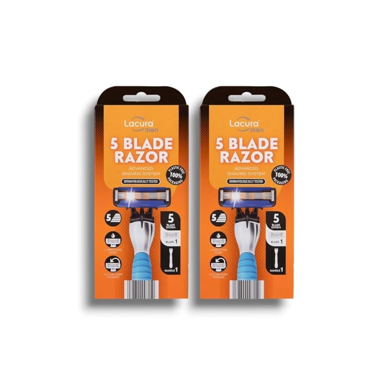 2x Lācurā Men - Aldi | 5 Blade Razor Advanced Shaving System | 1 Blade + 1 Handle In Each Pack | Twin Pack