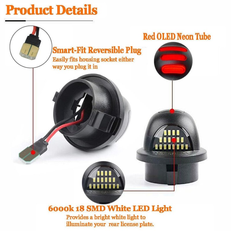 - Excellent Performance: These license plate lights are much brighter than stock lights. Besides, 3-row red OLED strips will greatly increase safety during night driving and enhance your vehicle look. Tremendously improve the lighting on rear license plate visibility at night.