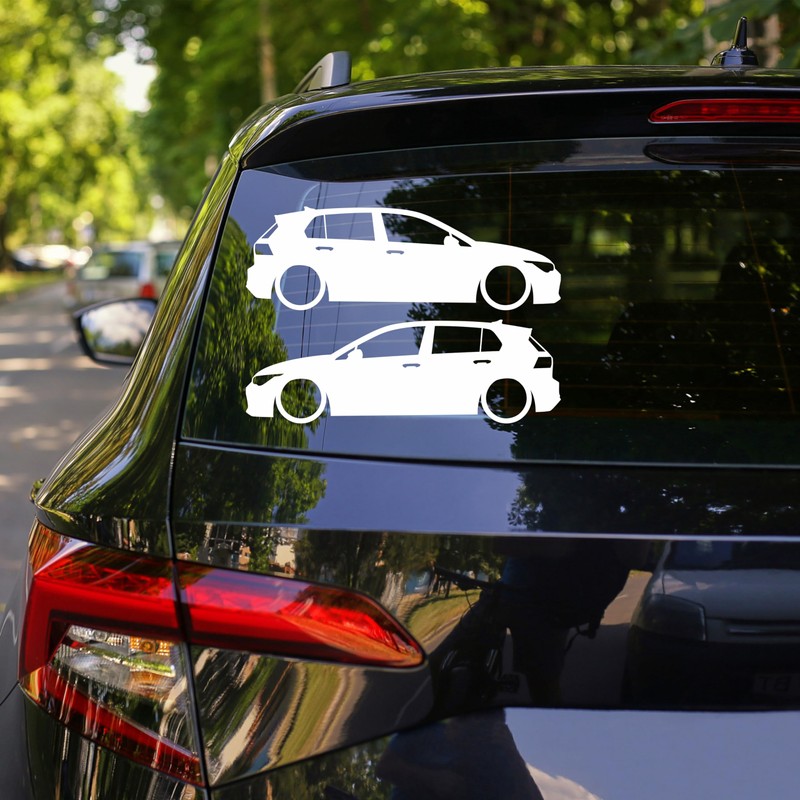 2x Lowered Car Silhouette Decal Stickers for Volkswagen VW Golf MK8 GTI GT