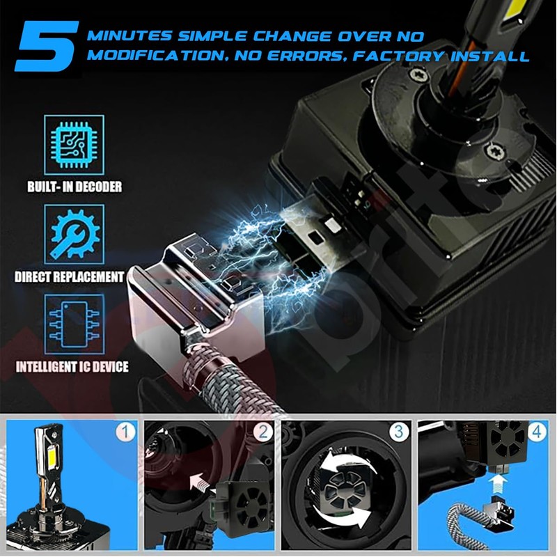 • ✅【200% Brighter Than Xenon Bulb】: D3S LED bulbs are made with high quality LEDs, 6000K Xenon White, 9000 Lumen high brightness per bulb, +200% brighter than standard bulbs standard xenon.