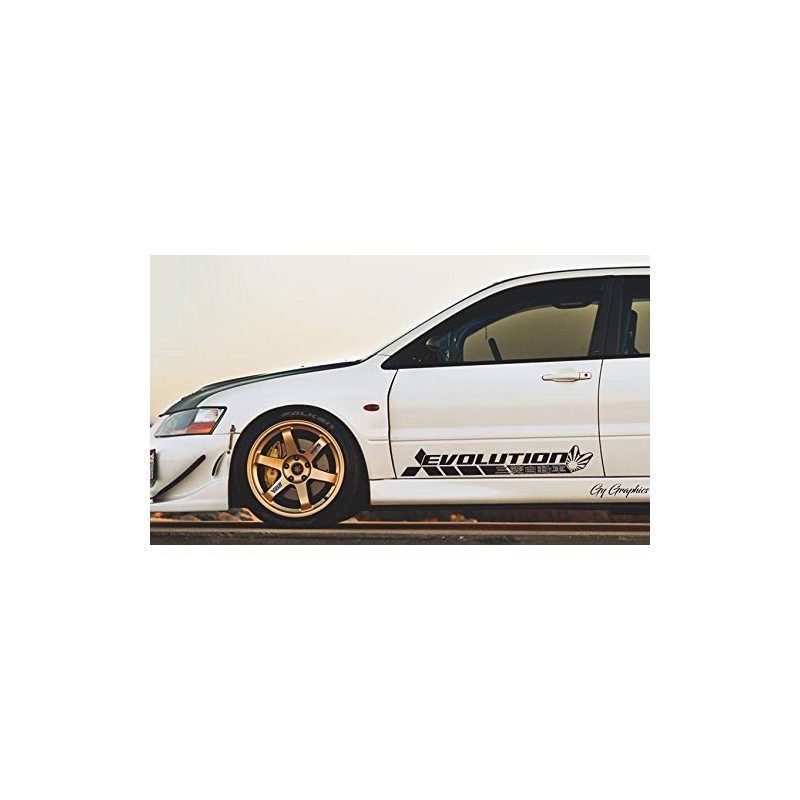 2X Pair Side Evolution v6 Lancer Evo 三菱 自動車 JDM Japan Made Rising Sun Evolution GT-A RS GSR MR MIVEC DOHC Car Vinyl Sticker Decal Banner (38" Wide)