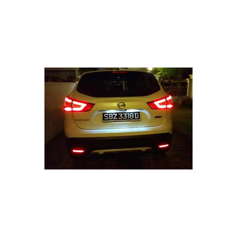 2x Red Lens Rear Bumper Reflector LED Fog Tail Stop Brake Light DRL For 2014-2021 Qashqai Pathfinder X-Trail Leaf Q50 Q30 QX30 QX80