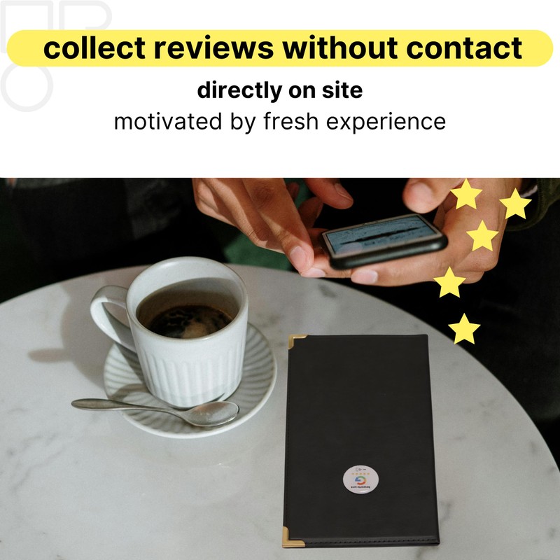 - JUST ONE TAP: Customers scan – your review page opens instantly. No search, no typing