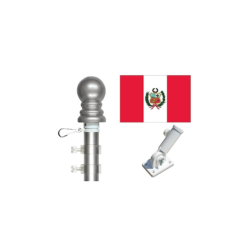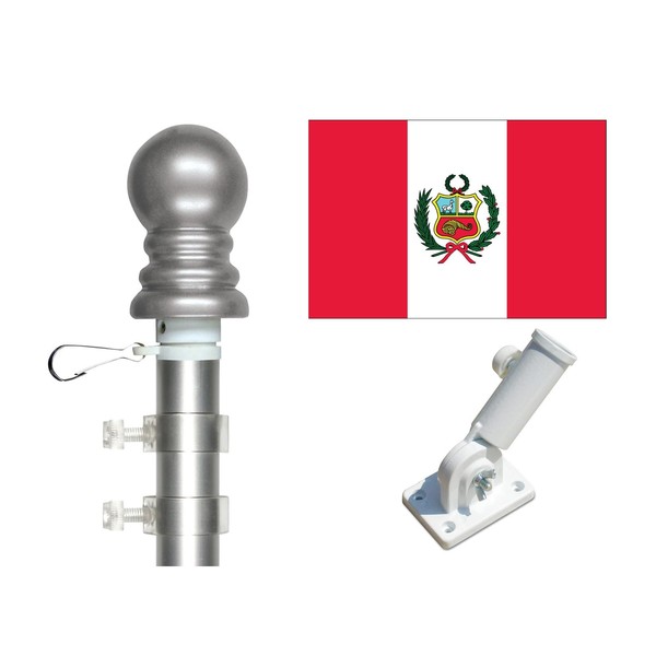 2x3 Foot Peru Polyester Flag Display Set Also Includes 1 Deluxe 4 Foot 2 Piece Spinner Flagpole and 1 Heavy Duty Mounting Bracket